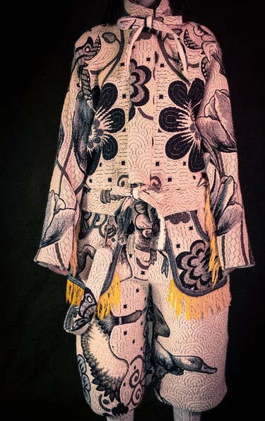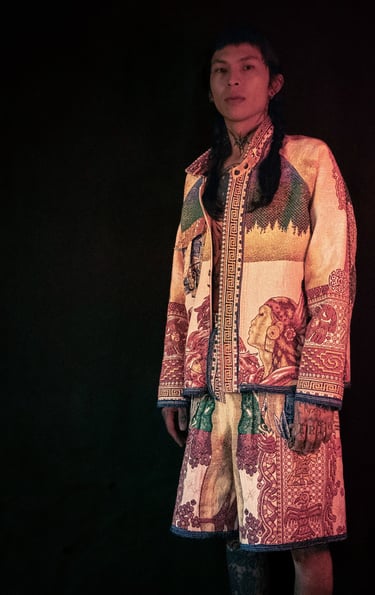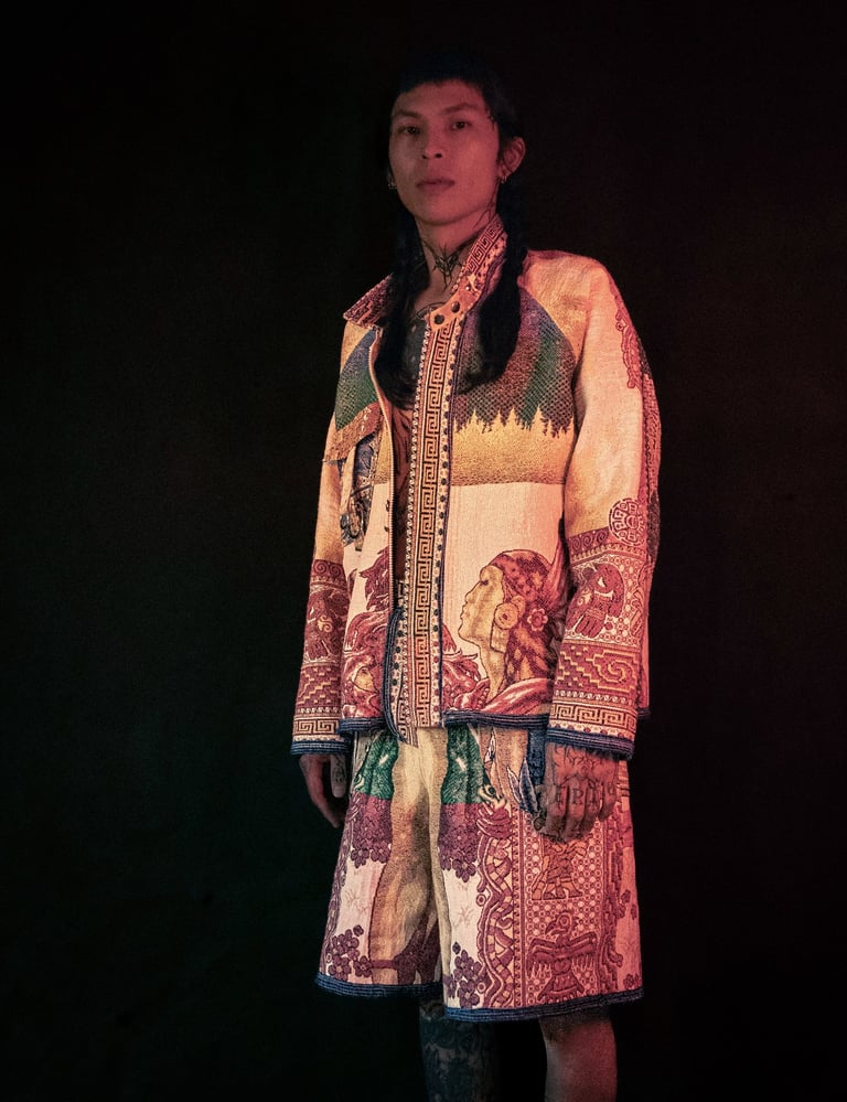 Capsule réalisée au Mexique, inspirée des cholos/cholas & crées à partir de Colchas chinées en Tianguis (marché de seconde-main), dans les Barrios de la Doctores et de Tepito.